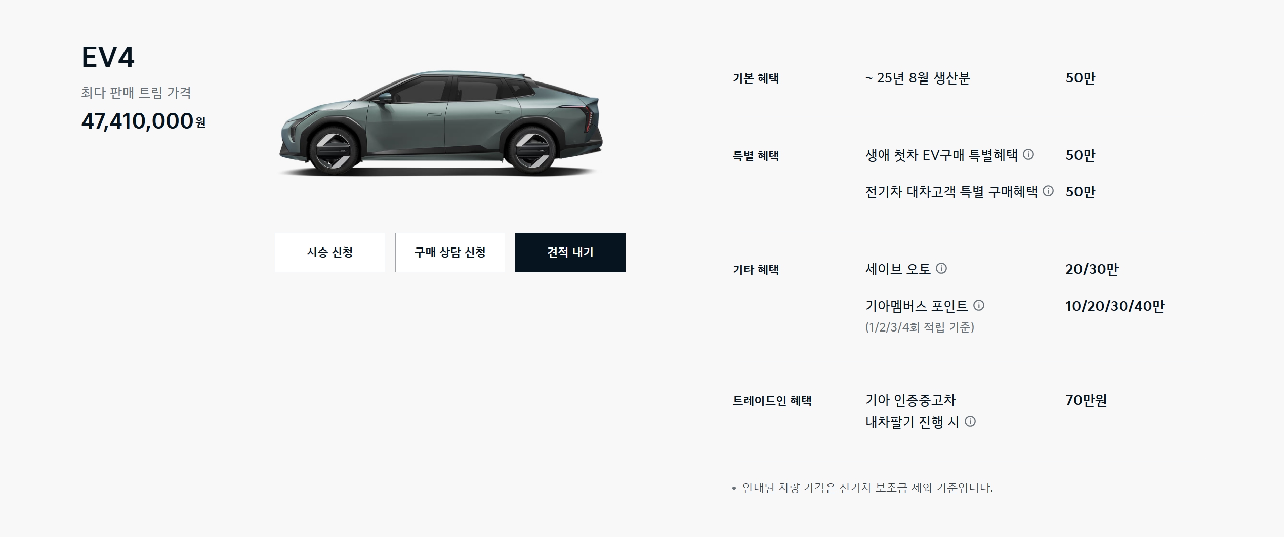 기아 EV4는 전기차 시장에서의 경쟁력을 높이기 위해 다양한 혜택을 제공합니다. 이번 프로모션에서는 EV4의 최대 판매 가격이 47,410,000원으로 설정되어 있으며, 조기 생산 모델에 대한 할인 혜택과 첫 전기차 구매자에 대한 특별 혜택이 제공됩니다. 기존 전기차 고객에게도 추가 인센티브가 주어지며, 서비스 할인 및 로열티 포인트도 포함되어 있습니다. 이러한 혜택은 EV4를 구매하고자 하는 소비자에게 매우 매력적입니다.