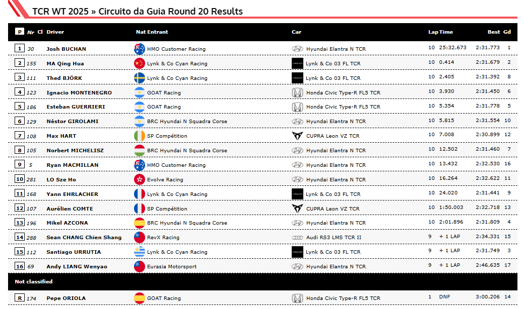 안녕하세요. 오토트랜드입니다. 이번 포스팅은 해외 모터스포츠 대회 경기 결과에 대해 포스팅을 하도록 하겠습니다. 바로 2025 TCR 월드 투어 19,20라운드입니다. 2025 TCR 월드 투어는 2022 시즌을 끝으로 폐지된 WTCR을 사실상 계승하는 새로운 포맷의 TCR 리그입니다. 전 세계 여러 지역의 TCR 시리즈 중에서 9개의 레이스를 선별 후 결과를 취합하여 풀 타임 출전으로 등록한 선수 중 15명의 상위 드라이버들을 우선 선발하고 전 세계의 TCR 시리즈에 참가한 드라이버 수백 명 중 45명을 별도로 선발, 총 60명의 드라이버가 연말에 열리는 플레이오프 경기인 TCR 월드 파이널에서 챔피언십을 결정하는 방식으로 2024 시즌부터 신설되었습니다.19,20라운드는 11월 15일과 16일에 마카오에서 진행되었습니다. 이로써 2025 TCR 월드 투어 시즌 종료가 되었습니다. 추후에 2026 시즌 일정에 대해 포스팅을 하도록 하겠습니다. 이상으로 이번 포스팅을 마치도록 하겠습니다.