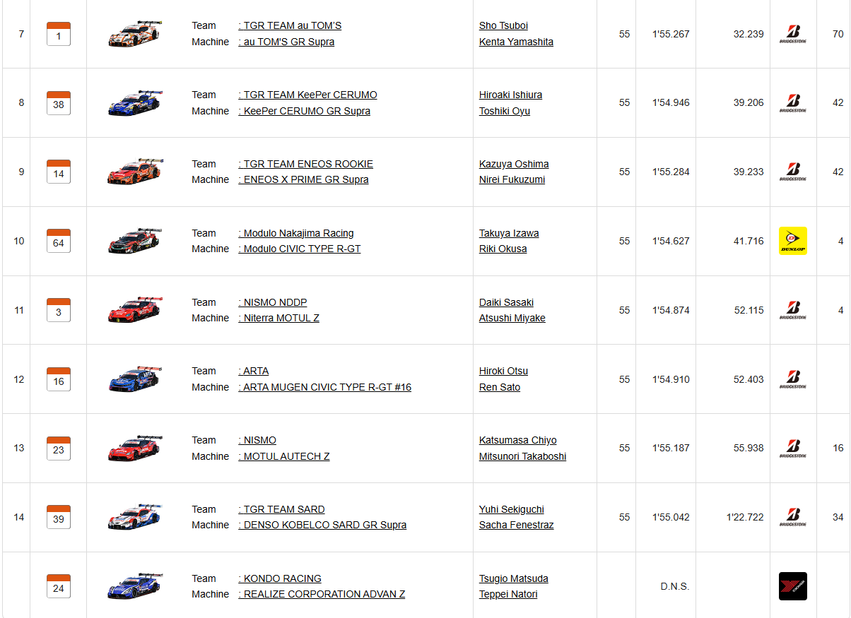 안녕하세요. 오토트랜드입니다. 이번 포스팅은 해외 모터스포츠 대회 경기 결과에 대해 알아보도록 하겠습니다. 바로 2025 일본 슈퍼 GT 대회 3라운드 경기 결과에 대해 알아보도록 하겠습니다. 일본 슈퍼 GT 대회는 일본 슈퍼 GT 대회는 일본을 대표하는 대회입니다.우리나라에 있는 CJ슈퍼레이스와 같은 급이라고 애기하고 싶습니다.1993년 창설하여 현재까지 이어지고 있습니다. 3라운드는 6월 27일과 28일에 세팡 인터내셔널 서킷에서 레이스가 진행되었고 아래 경기 결과입니다. 4라운드는 8월 2일과 3일에 진행되었고 추후에 포스팅을 하도록 하겠습니다. 이상으로 이번 포스팅을 마치도록 하겠습니다.