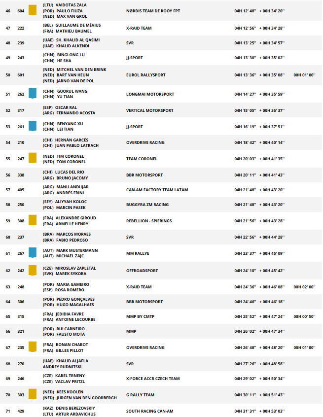 안녕하세요. 오토트랜드입니다. 이번 포스팅은 해외 모터스포츠 대회 경기 결과에 대해 포스팅을 하도록 하겠습니다. 바로 2026 다카르 랠리 경기 결과입니다. 다카르 랠리는 인간의 엔진 달린 지상용 탈것으로 할 수 있는 가장 극한의 레이스 중 하나로 알려진 대회입니다. 자동차뿐만 아니라 오토바이,4륜 자동차 등등 다양한 차량들이 극한의 레이스가 출전하고 있습니다. 이번 경기 결과는 6단계이며 1월 9일에 레이스가 했고 시작은 하일에서 리아드에서 마무리가 되었습니다. 아래 경기 결과이며 추후에 7단계 경기 결과에 대해 포스팅을 하도록 하겠습니다. 이상으로 이번 포스팅을 마치도록 하겠습니다.