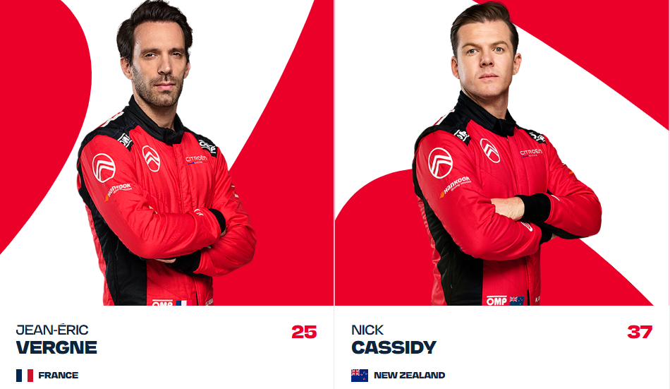 시트로엥 레이싱팀은 이번 시즌에 두 명의 드라이버가 출전하고 있는 데 바로 장 에릭 베르뉴과 닉 캐시디 드라이버오 함께 대회에 출전하고 있으며 레이스카는 시트로엥 ë-CX 레이스카를 타고 출전 중입니다. 추후에 두 드라이버에 대해 자세한 소개는 "해외 모터스포츠 드라이버"카테고리에서 포스팅을 하도록 하겠습니다. 엔트리 넘버는 25번(장 에릭 베르뉴)과 37번(닉 캐시디)입니다. 이상으로 이번 포스팅을 마치도록 하겠습니다.