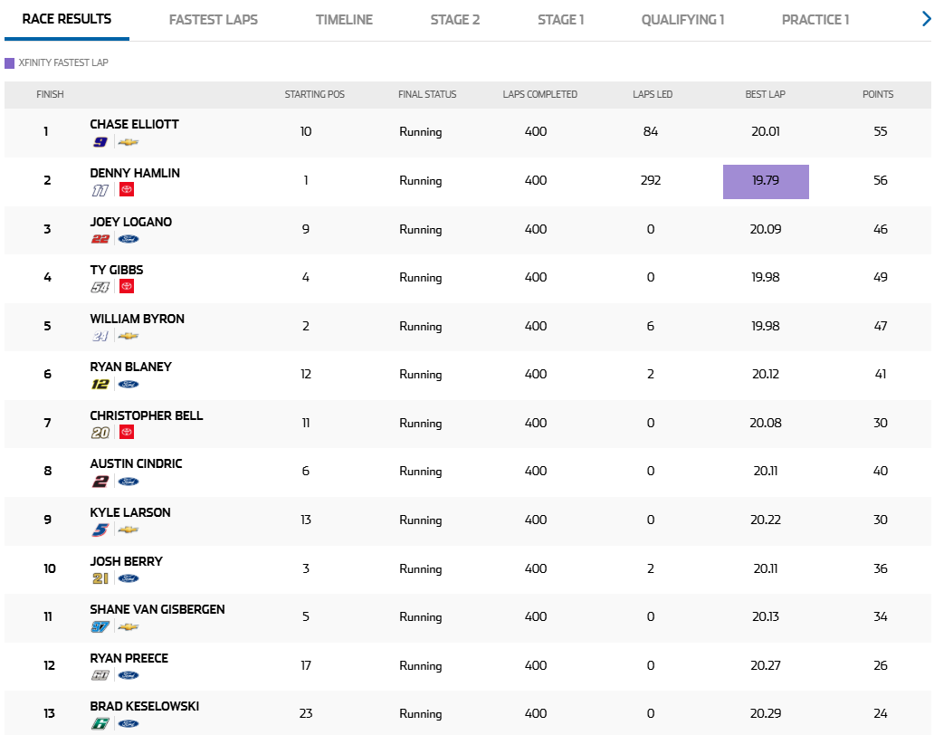 안녕하세요. 오토트랜드입니다. 아번 포스팅은 해외 모터스포츠 대회 경기 결과에 대해 알아보도록 하겠습니다. 바로 나스카 컵 시리즈 10라운드 경기 결과입니다.나스카(NASCAR)는 1948년에 설립이 되었고 전미 스톡 자동차 경주 협회에서 주최하는 종합 스톡 자동차 경주 대회를 일컫습니다.나스카에서 공인된 자동차 경주 대회로 미국의 38개 주, 캐나다, 그리고 멕시코에서 100개 이상의 경주로, 1,500개 이상의 자동차 경주 대회를 공인하고 있다고 합니다.미국의 독자적인 오픈휠 포뮬러 레이스인 인디카과 더불어 미국을 대표하는, 더 나아가 전세계의 최고 스톡카 경주 시리즈입니다. 10라운드는 3월 29일에 마틴스빌 스피드웨이에서 진행되었습니다. 아래 경기 결과이며 다음 라운드는 4월 12일에 진행될 예정이고 추후에 포스팅을 하도록 하겠습니다. 이상으로 이번 포스팅을 마치도록 하겠습니다.